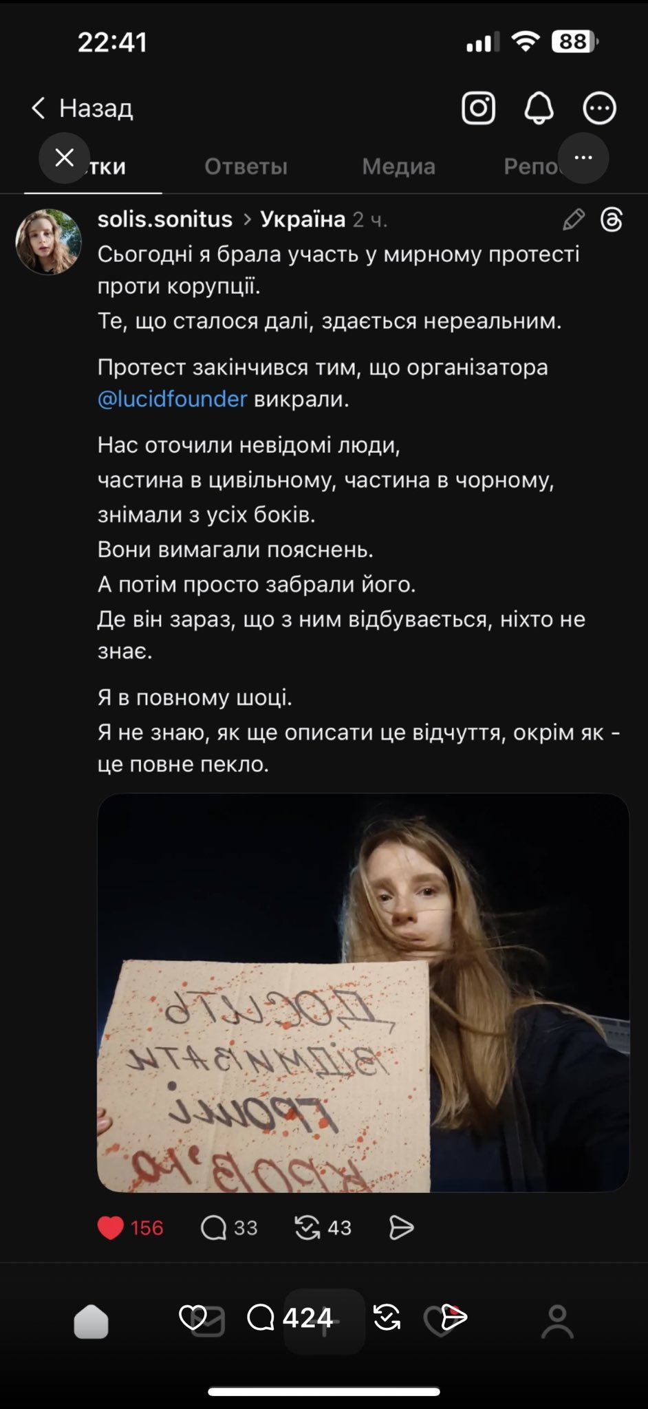 "Те, кто это допустил и допускает, знайте, вы преступники. Вы довели ситуацию именно до такого. Так не должны погибать наши лучшие Воины, но они погибли, и остальные погибнут так же, благодаря вам, выродки", - добавляет канал.