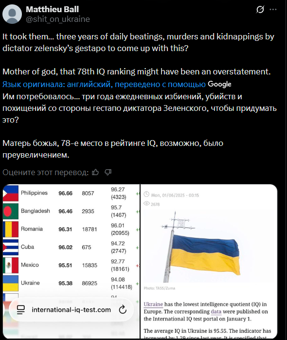 Невозможно просто взять так и всех заставить говорить по украински. Нужно всех убить. Мы не ебаное монобольшинство, — как вы это не поймете. Нужно договариваться и жить мирно.В Нью-Йорке общаются на просто дохуя языках мовах, со слова выехавшего. А у нас мова, обмудсмены, чтобы пидорашки цеплялись за вот эту хуйню про ущемление русскоязычных. Даже прибалты русофобские дают экзамены, которые любой укрмовный на изи бизи пройдет. Как мне всё это надоело, жиди убили страну и население ооо уеее дааа, давай ещё.