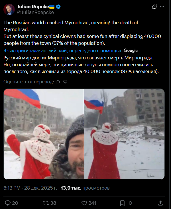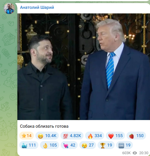 "Как обычно, я не буду комментировать встречу Зеленского и Трампа. Это всё театр, мирного соглашения не будет.