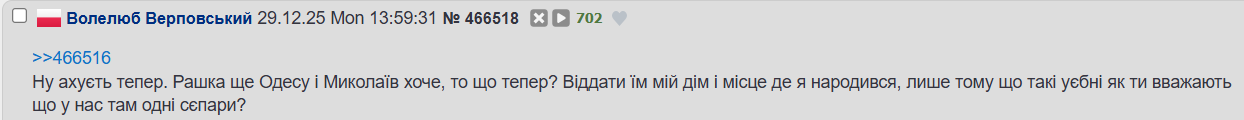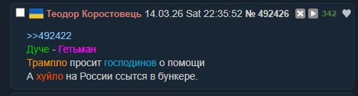 ПРИМІТКА ВІД МОДЕРАЦІЇ:Дотримуйтесь теми або пройдіть у відповідний тред.ТРЕД ПРО УКРАЇНСЬКО-РОСІЙСЬКУ ВІЙНУ, ВЗАЄМИНИ І «ПРОСТО РОЗІБРАТИСЬ»: >>63480ТРЕД ПРОБЛЕМ УКРОАНОНІВ, ЯКІ ВИЇХАЛИ: >>63477Попередні: