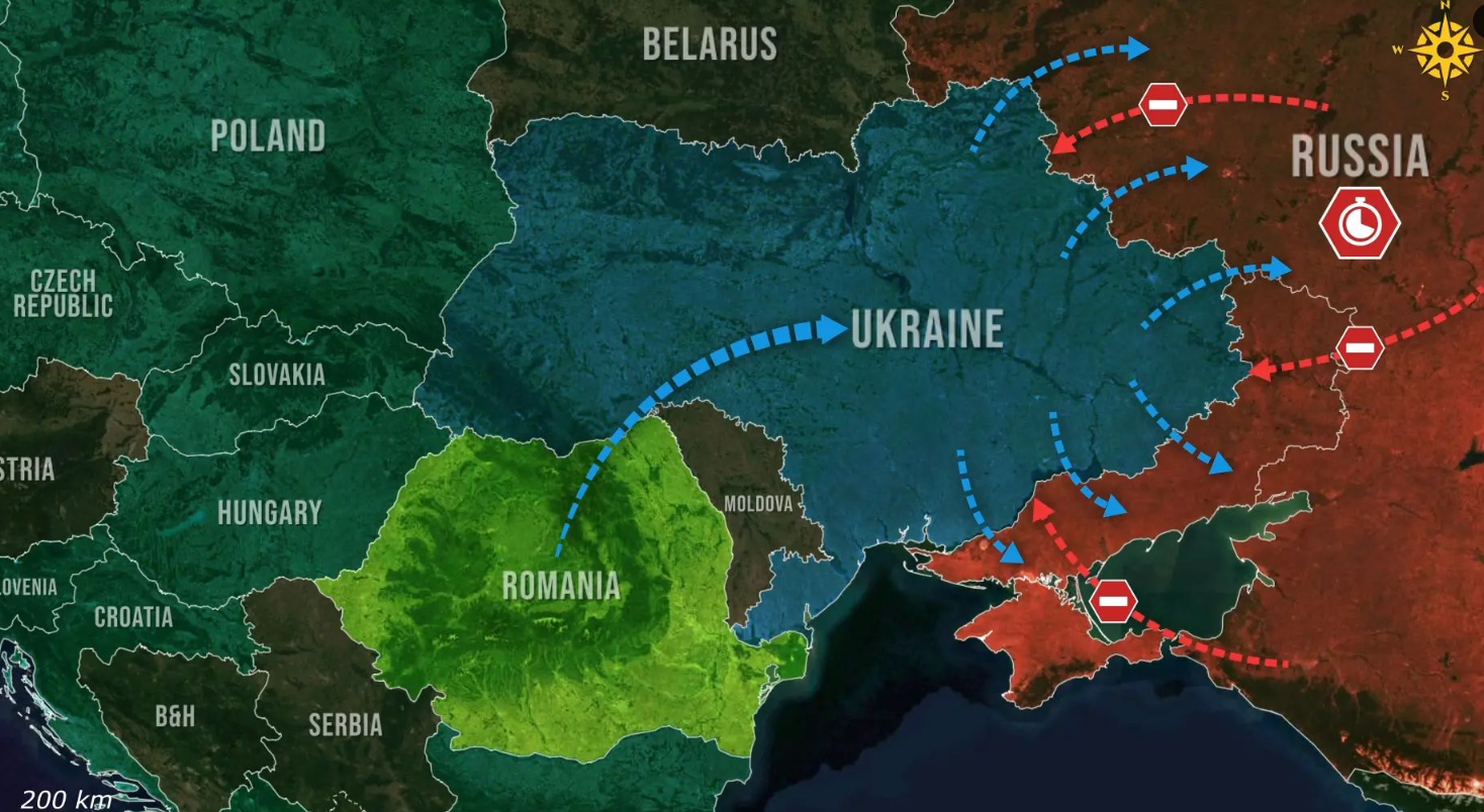 Умеров обвел северную границу Украины с Россией и Беларусью, провел по линии соприкосновения через Харьковскую, Луганскую, Донецкую, Запорожскую и Херсонскую области.