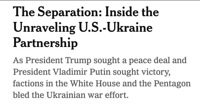 The New York Times пишет, что заморозив военную помощь в марте, команда Трампа впервые добилась от Украины согласия на территориальные уступки ради завершения войны.