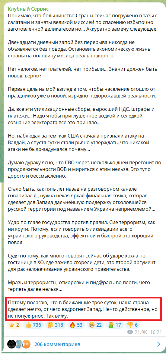 В статье заявляется, что «атаки беспилотника на резиденцию Путина, скорее всего, никогда и не было».