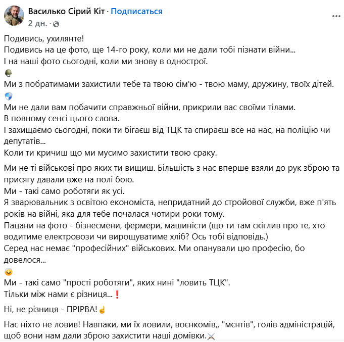 Інше діло коли ти нікого не чіпаєш, ведеш звичайний образ життя, а за тобой починається полювання як за звіром. Вчорашні бурсаки та тарктористи з завищеним почуттям власної важливості, вирішують тебе перетворити у раба.