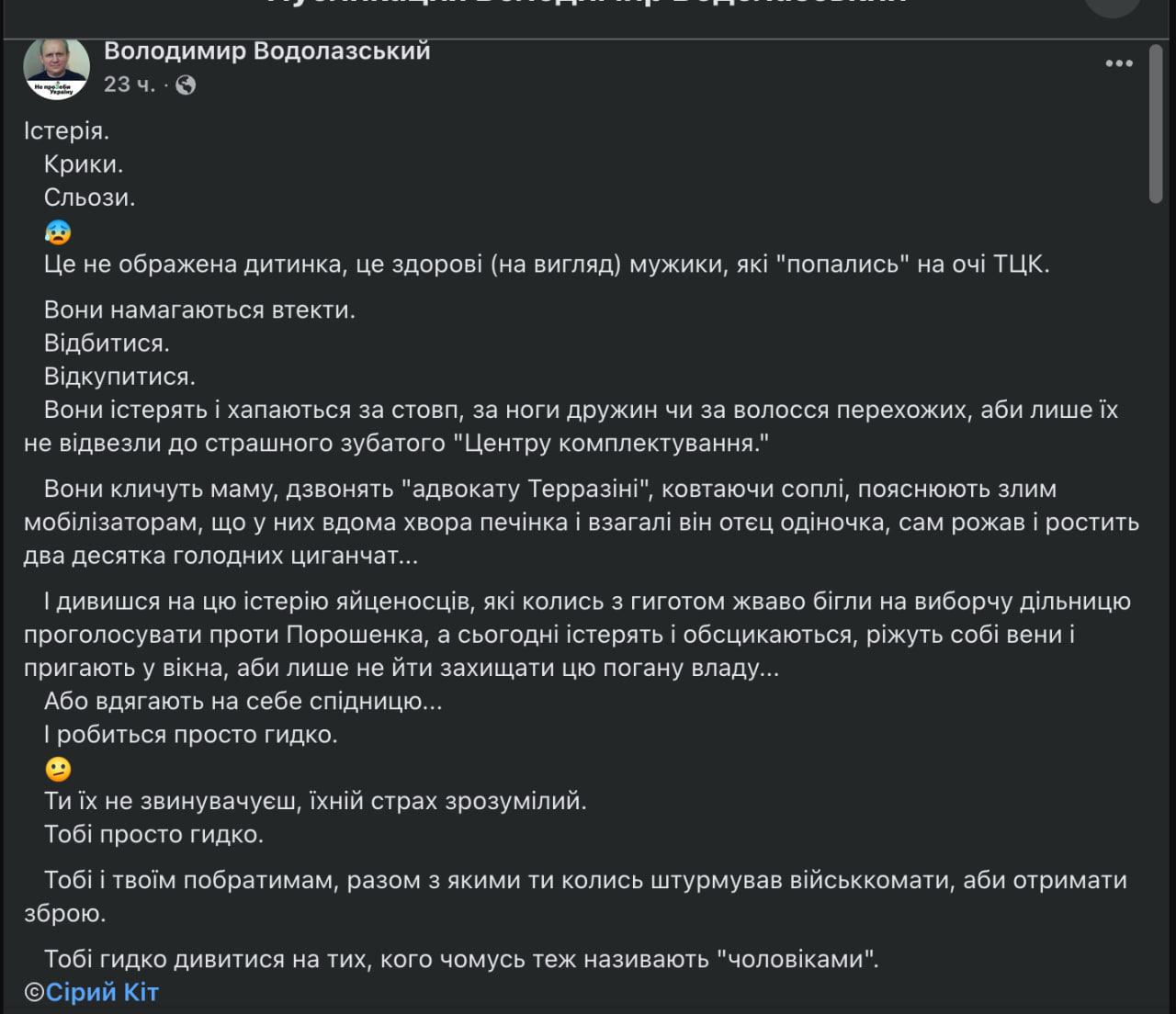 >>258045тут важить цікаве, росія мобає людей, каже зебоба, а нам треба військових ліквідовувати, на жаль не поточнив чиїх військових він мав на увазі