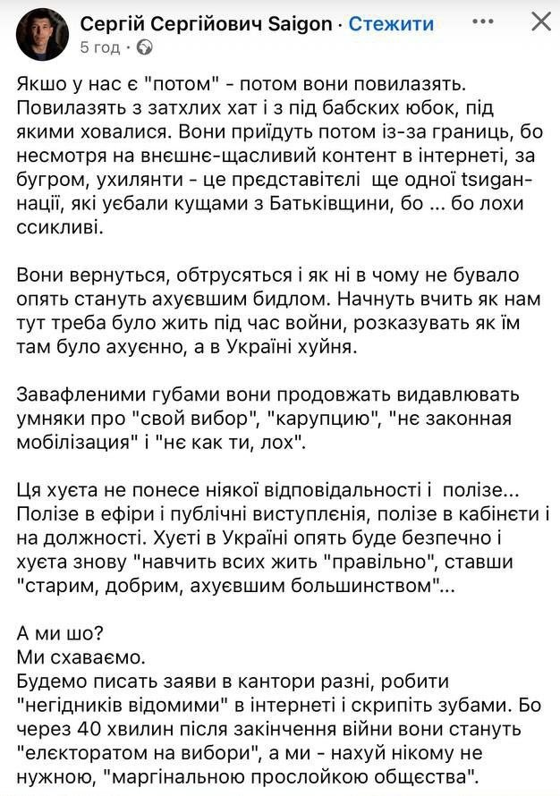 Не переймайся, Сергію Сергійовичу, більшість небезпечних вояк-патріотів чекає НКМЗовсталь, а проблеми ухилянтів "потім" - це точно не те, що має цікавити смертників цього слов'янорізу.
